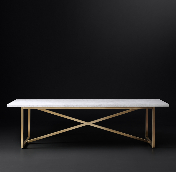 Modern Trestle White Marble Top And Gold Stainless Steel Frame